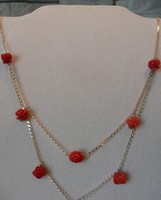 ollana a 2 file in degradè realizzate in oro giallo e rose in corallo rosso di Sardegna, pendenti